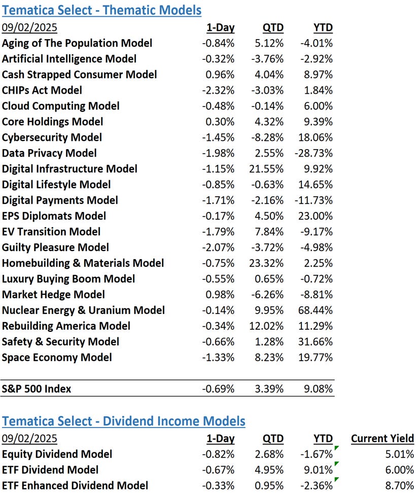 Thanks for reading and if you have a suggestion for an article or book we should read, or a stream we should catch, email us at info@tematicaresearch.com. The same email works if you want to know more about our thematic and targeted exposure models listed above.